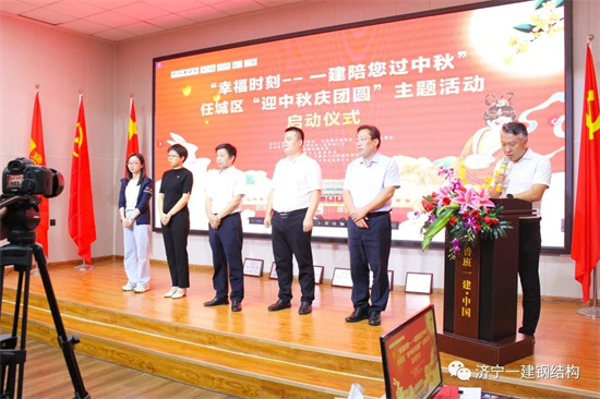 2021年9月18日上午9時許“幸福時刻-- 一建陪您過中秋"主題活動在濟(jì)寧一建鋼結(jié)構(gòu)工程有限公司啟動,此次活動得到了任城區(qū)民政局、共青團(tuán)任城區(qū)委、阜橋街道的關(guān)注與支持,并出席了本次啟動儀式和大家歡慶中秋,他們是民政局黨組成員王培讓局長、共青團(tuán)區(qū)委張珣書記、濟(jì)寧一建鋼結(jié)構(gòu)有限公司王長留董事長、區(qū)民政局社工和慈善促進(jìn)科杜海霞科長、阜橋街道民政辦劉偉波主任,歡迎各位領(lǐng)導(dǎo)的到來。參加本次活動的還有社區(qū)社會組織和志愿者,青年志愿者、“幸福拾光”志愿者、暖心港灣項目志愿者團(tuán)隊。 阜橋街道解放路社區(qū)魏憲金書記致歡迎詞